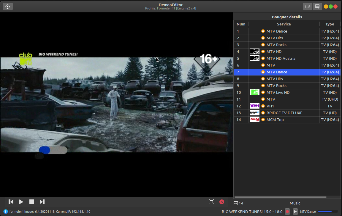 The program is tested only with openATV image and Formuler F1 receiver in Linux Mint (MATE 64-bit) distribution!